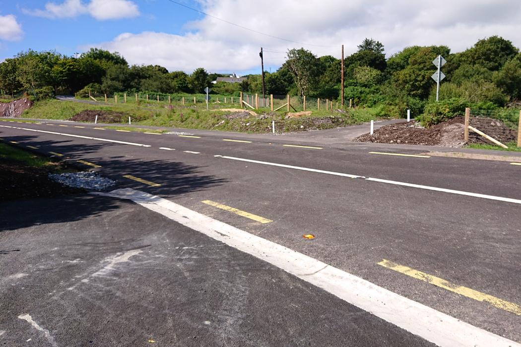 Von Kenmare kommend biegt unser Feldweg rechts kurz vor den beiden Strommasten ab. Oder von der Beachbar gesehen die zweite Einfahrt nach links