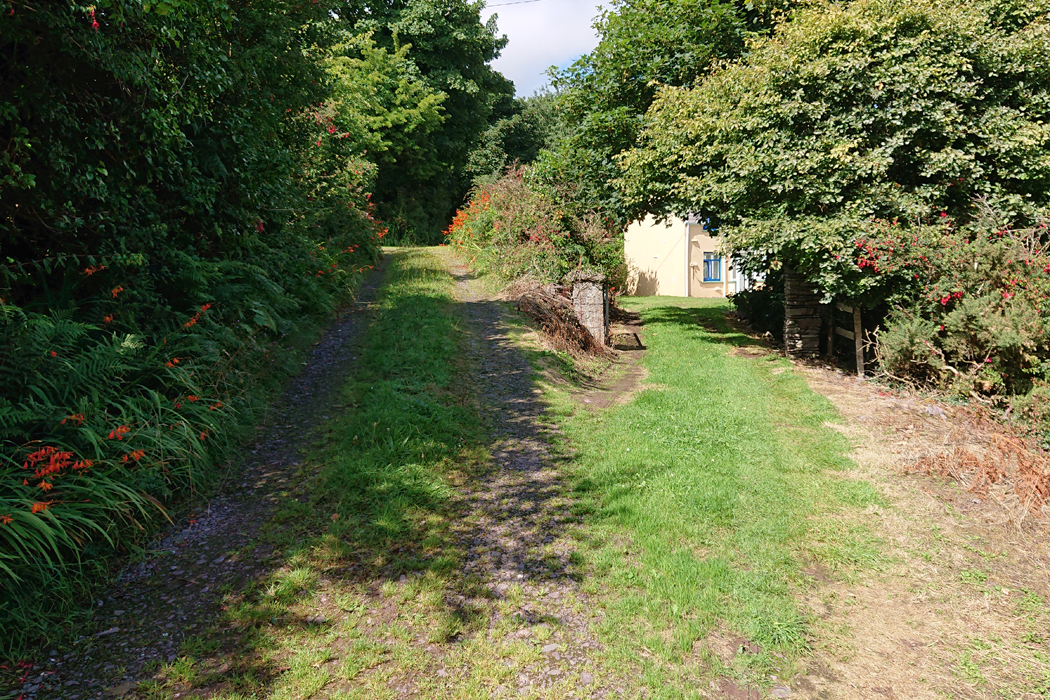 Dem Feldweg links folgen, der Parkplatz ist weiter oben links, bei der Weggabelung
