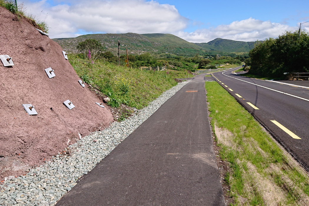 Blick von der Beachbar Richtung Castlecove. Unser Weg ist der zweite hinter den Strommasten links
